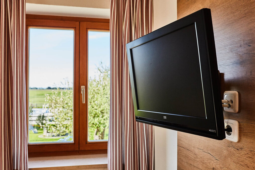 Unsere Ferienwohnung Nr. 2 „Mohnblume“ befindet sich im 1. Obergeschoss mit Blick zum Obstgarten.
